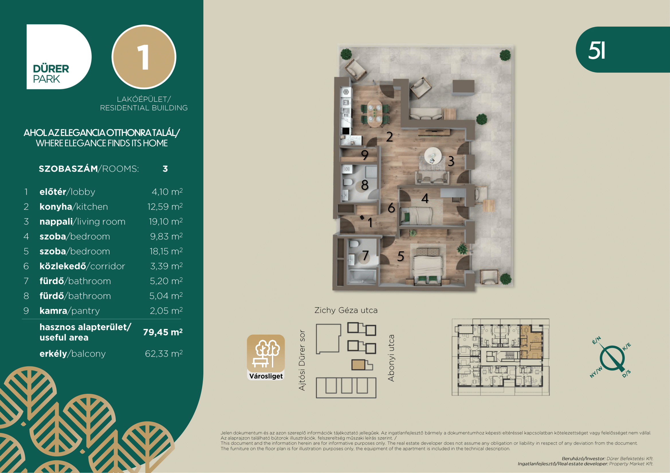 | Apartment DPR1_A.01.07 | Size 79.45 m2 | Room numbers 3 | Floor 1. | Orientation Délkeleti |