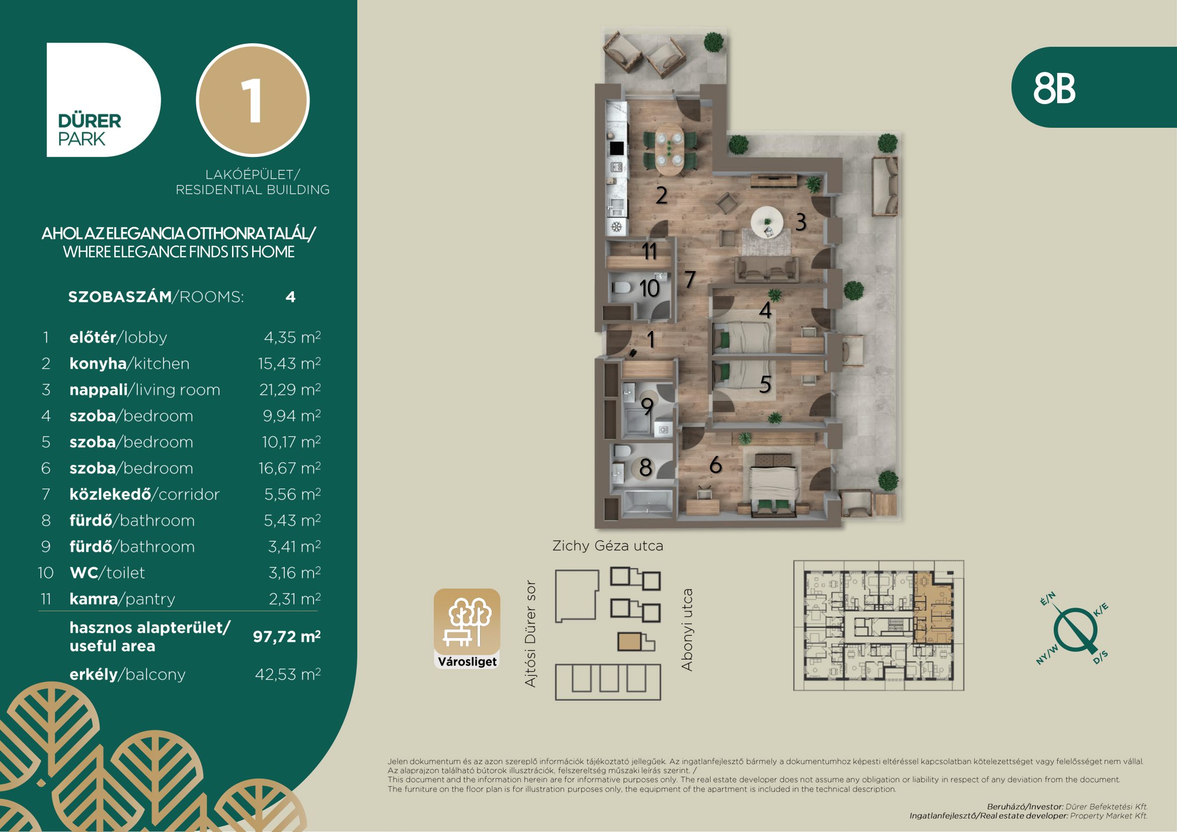 | Apartment DPR1_A.02.07 | Size 97.72 m2 | Room numbers 4 | Floor 2. | Orientation Délkeleti |