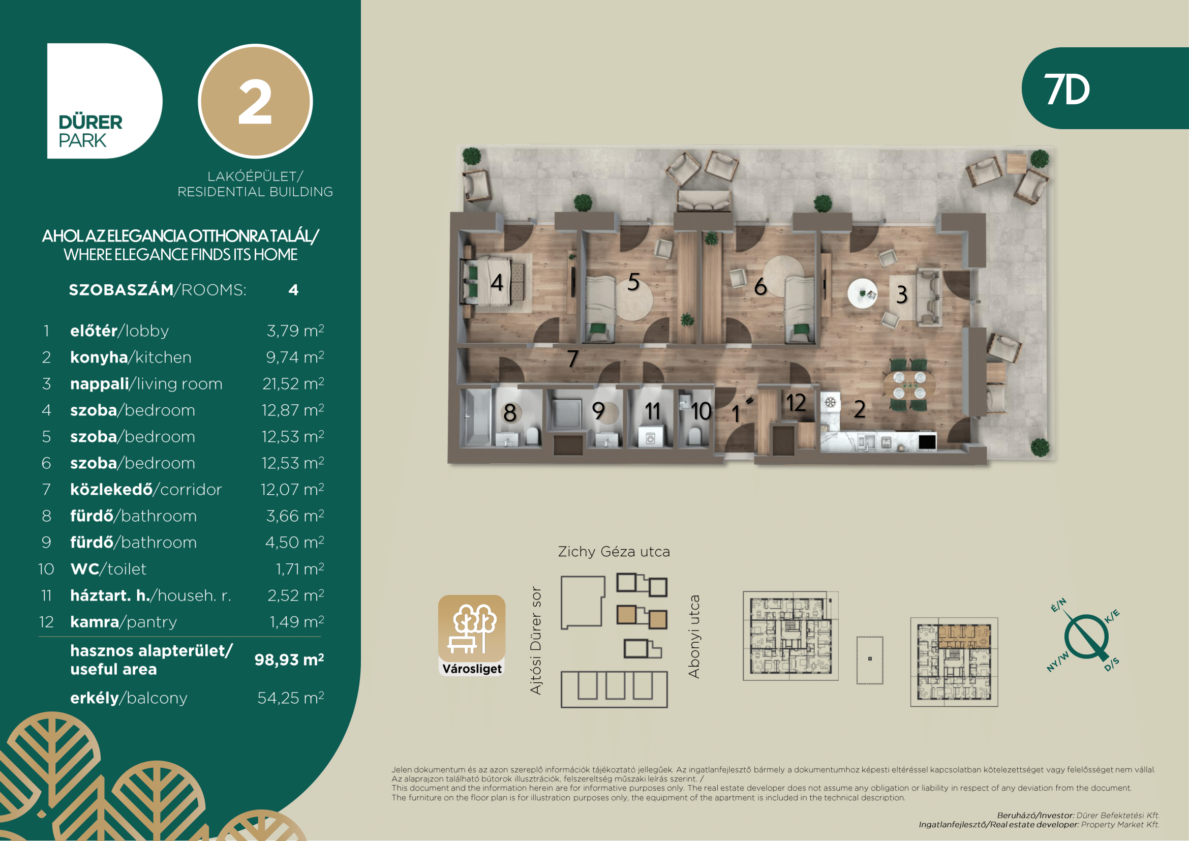 | Apartment DPR2_A.02.01 | Size 98.93 m2 | Room numbers 4 | Floor 2. | Orientation Délkeleti |