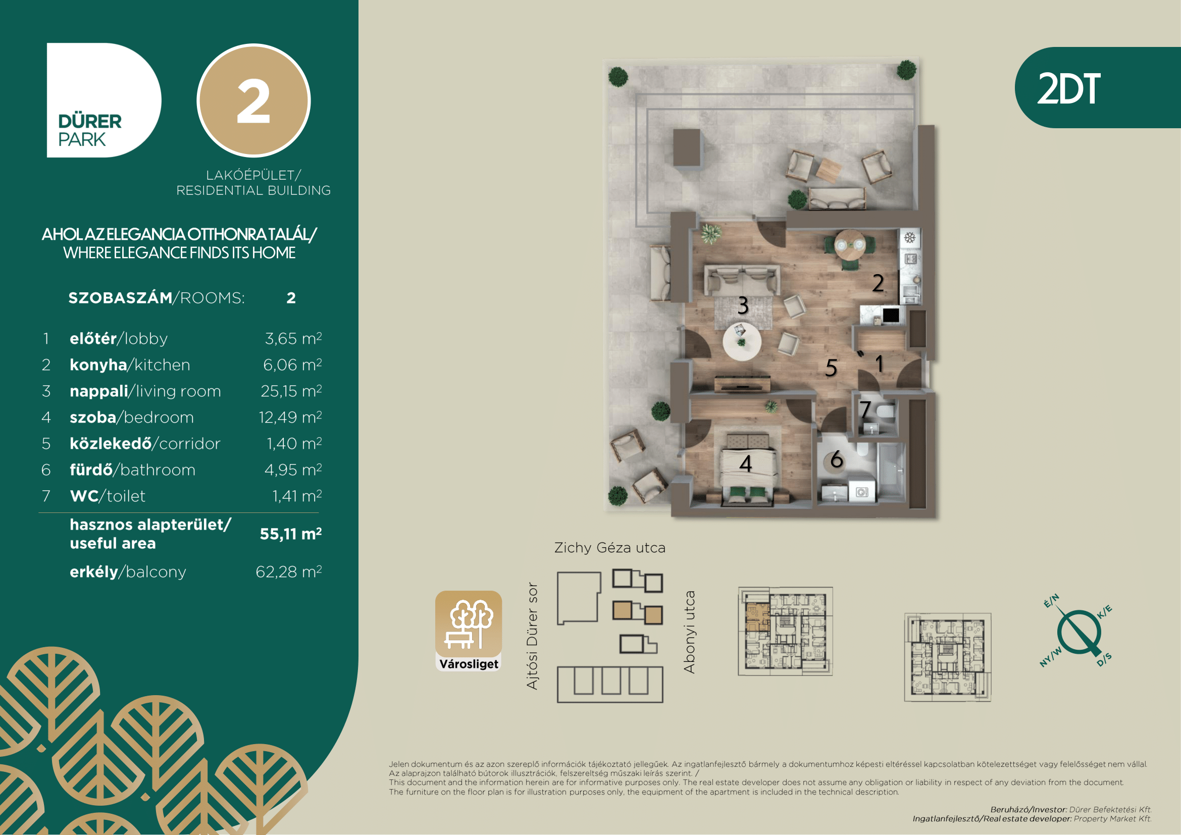 | Apartment DPR2_B.03.05 | Size 55.11 m2 | Room numbers 2 | Floor 3. | Orientation Északi |