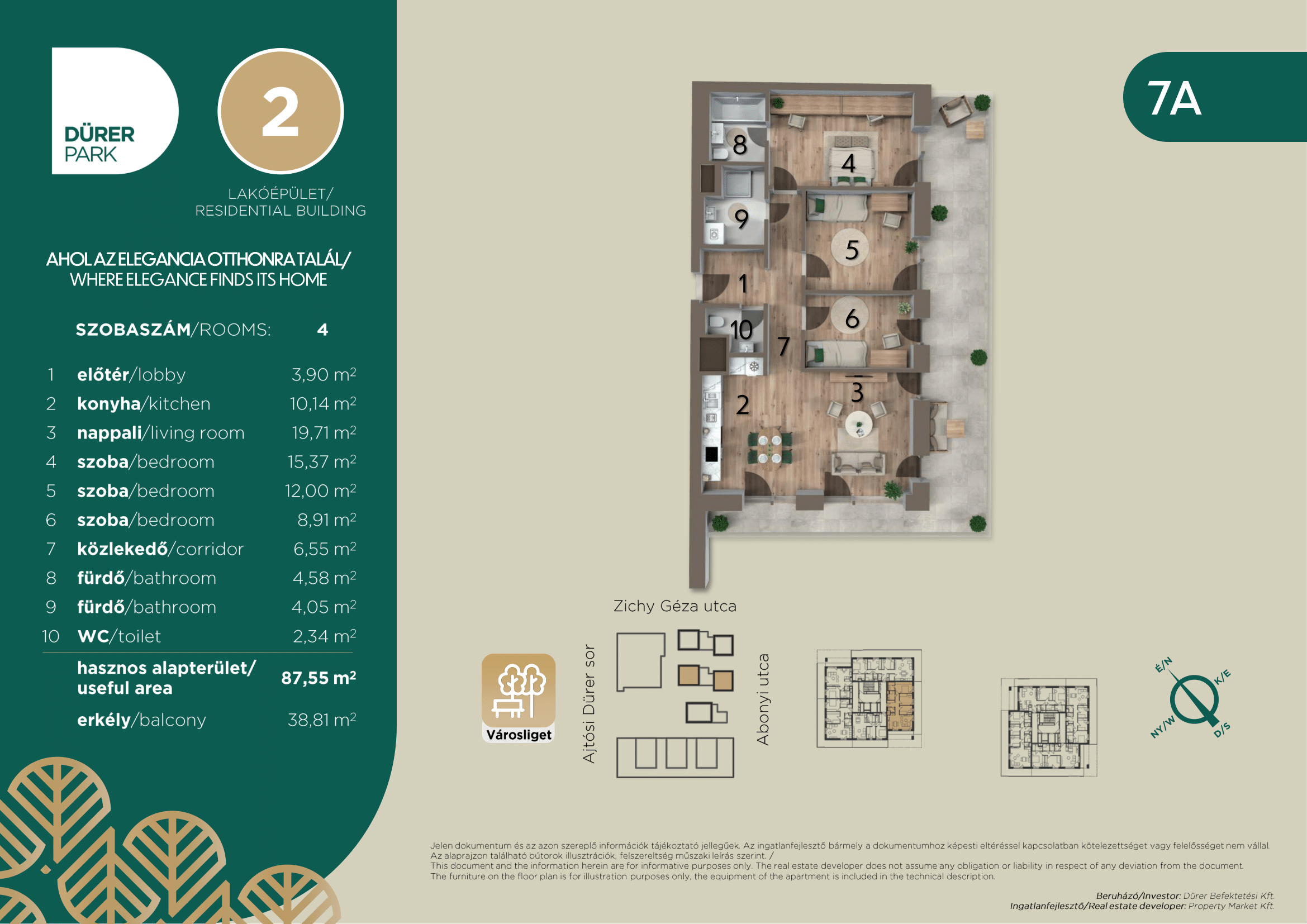 | Apartment DPR2_B.04.02 | Size 87.55 m2 | Room numbers 4 | Floor 4. | Orientation Déli |