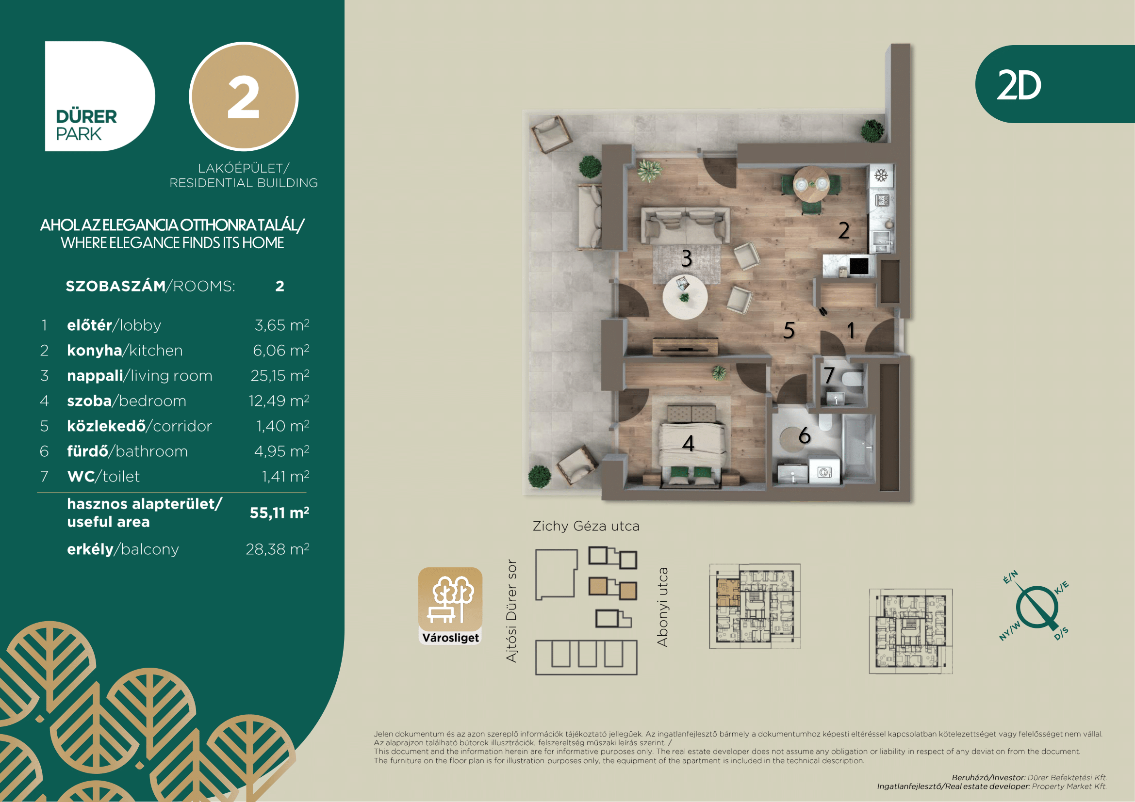 | Apartment DPR2_B.04.05 | Size 55.11 m2 | Room numbers 2 | Floor 4. | Orientation Északi |