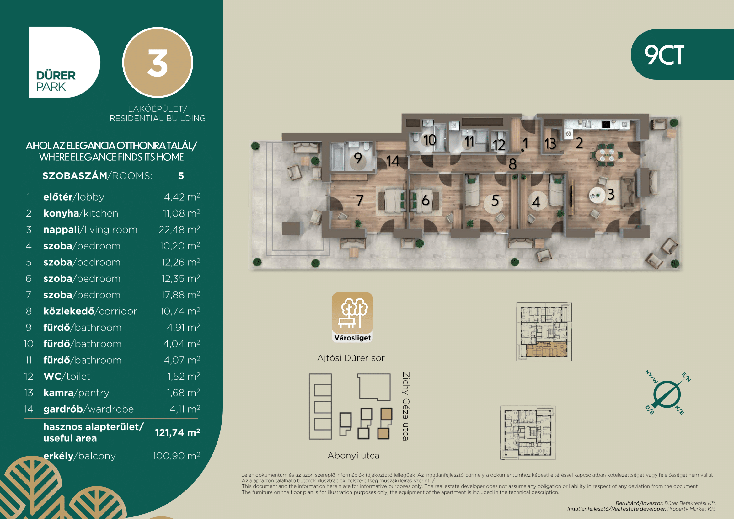 | Apartment DPR3_B.03.01 | Size 121.74 m2 | Room numbers 5 | Floor 3. | Orientation Délkeleti |