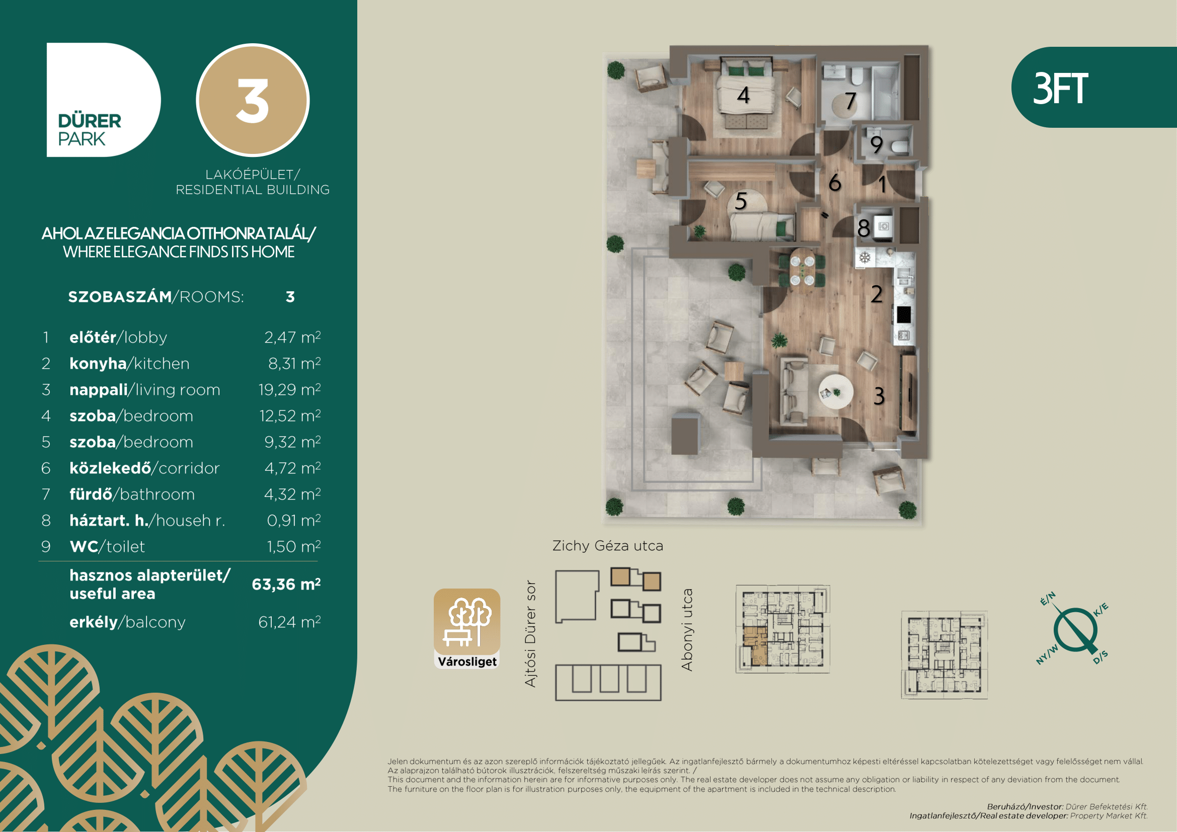 | Apartment DPR3_B.05.04 | Size 63.36 m2 | Room numbers 3 | Floor 5. | Orientation Nyugati |