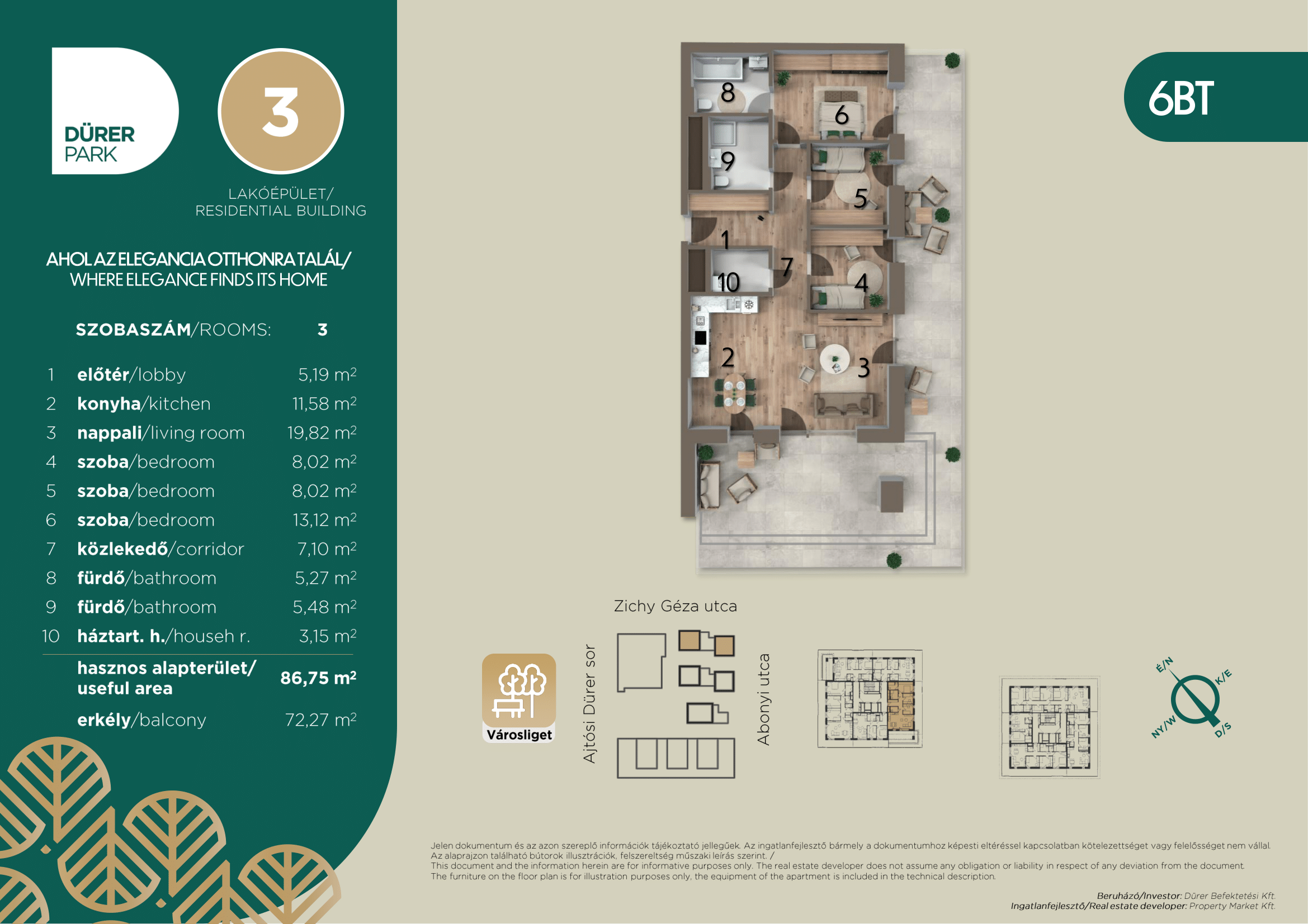 | Apartment DPR3_B.07.02 | Size 86.75 m2 | Room numbers 4 | Floor 7. | Orientation Déli |