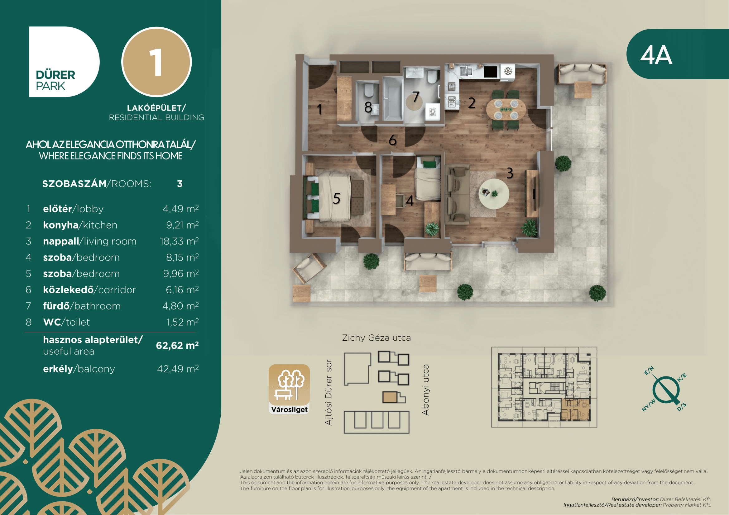 | Lakás DPR1_A.06.01 | Alapterület 62.62 m2 | Szobaszám 3 | Emelet 6. | Tájolás Déli |