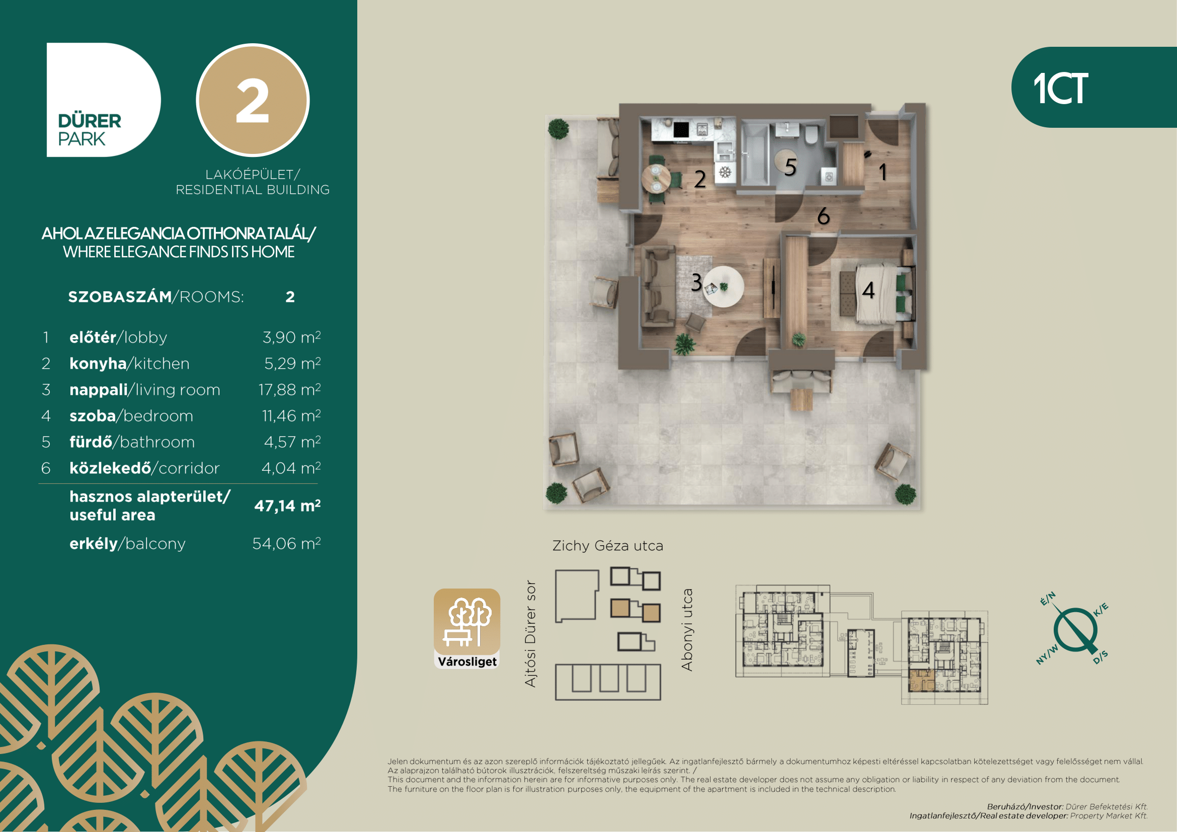 | Lakás DPR2_A.01.04 | Alapterület 47.14 m2 | Szobaszám 2 | Emelet 1. | Tájolás Nyugati |