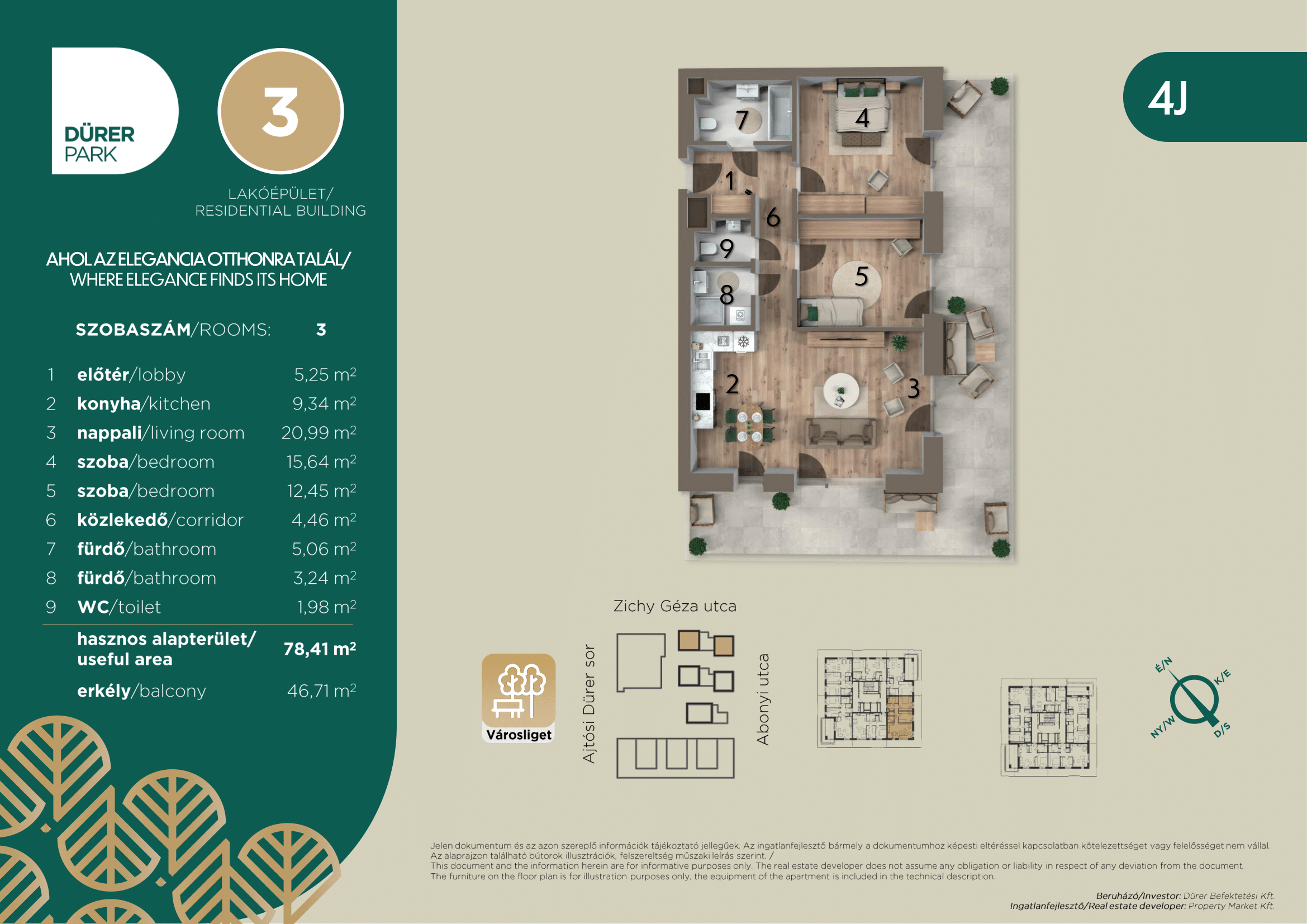 | Lakás DPR3_B.05.02 | Alapterület 78.41 m2 | Szobaszám 3 | Emelet 5. | Tájolás Déli |